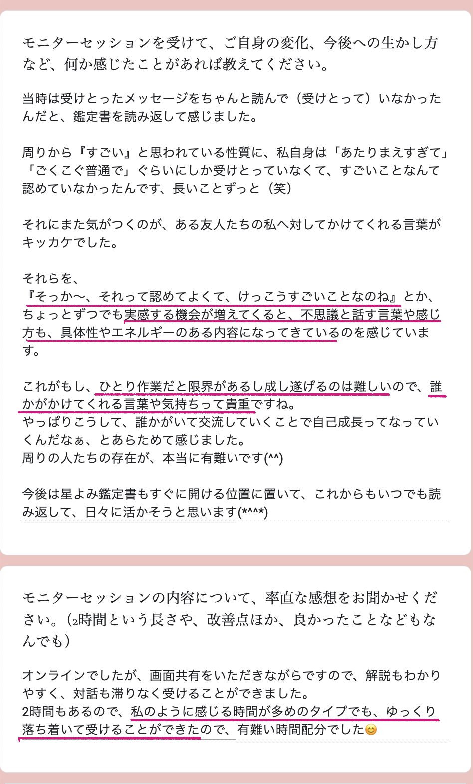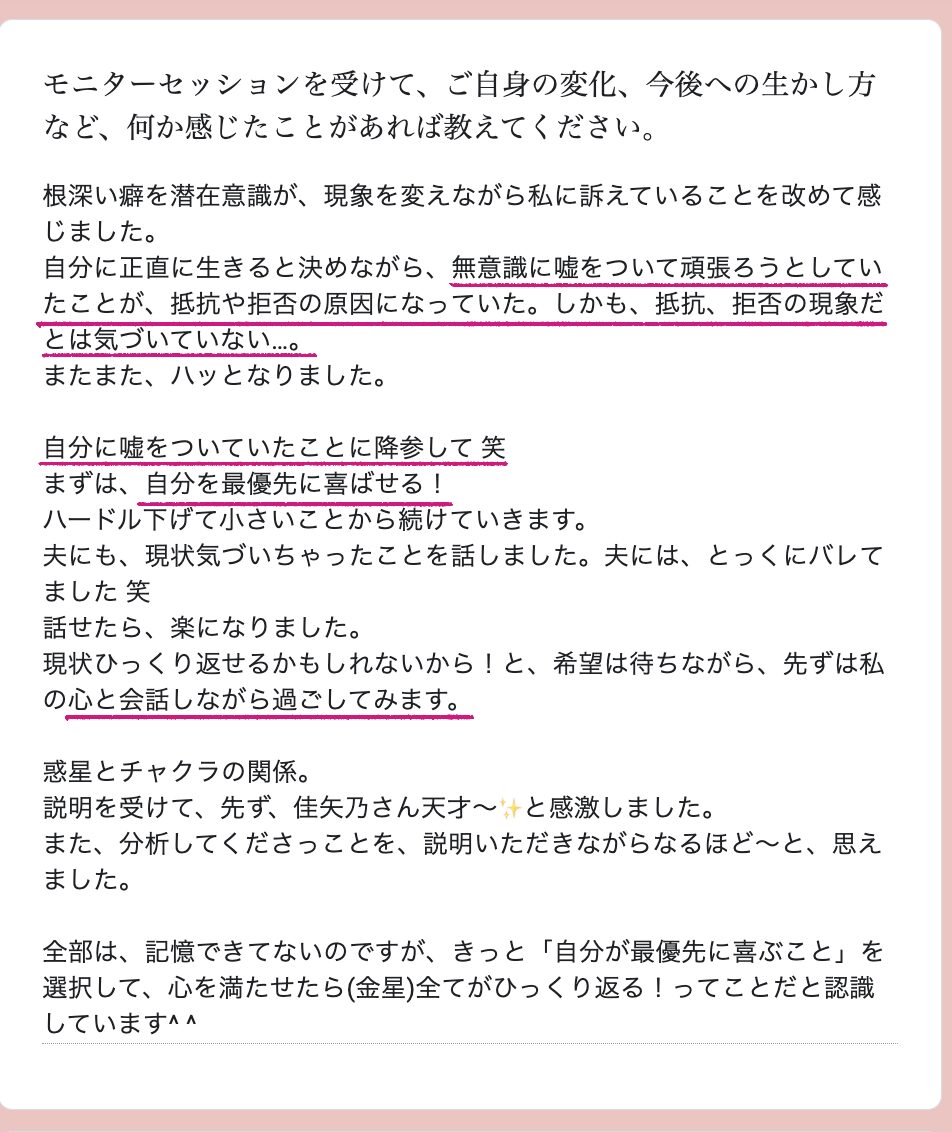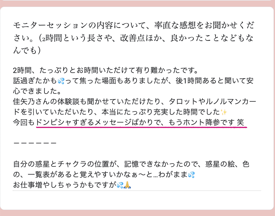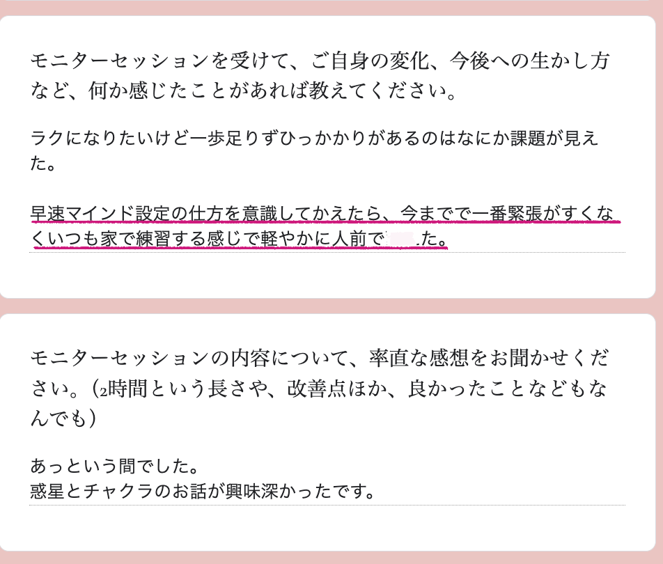 今回のモニターセッションを受けてくださった方々の中には、