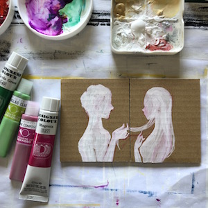 セミオーダー絵画「しずくふたつ」原画・サイズ小・カップルへのプレゼントにも