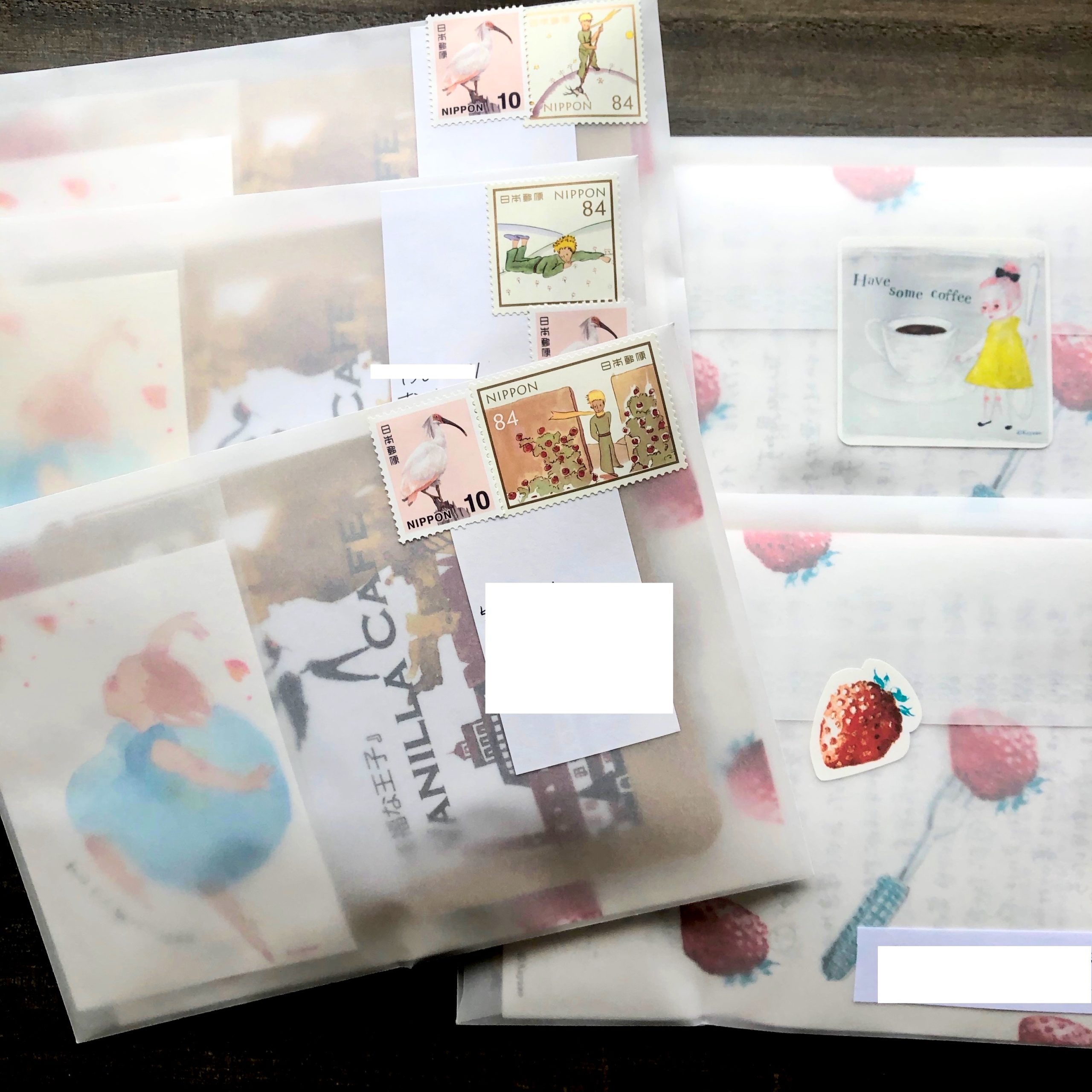 レターセットで使用している半透明のトレーシング封筒でお届けします♪