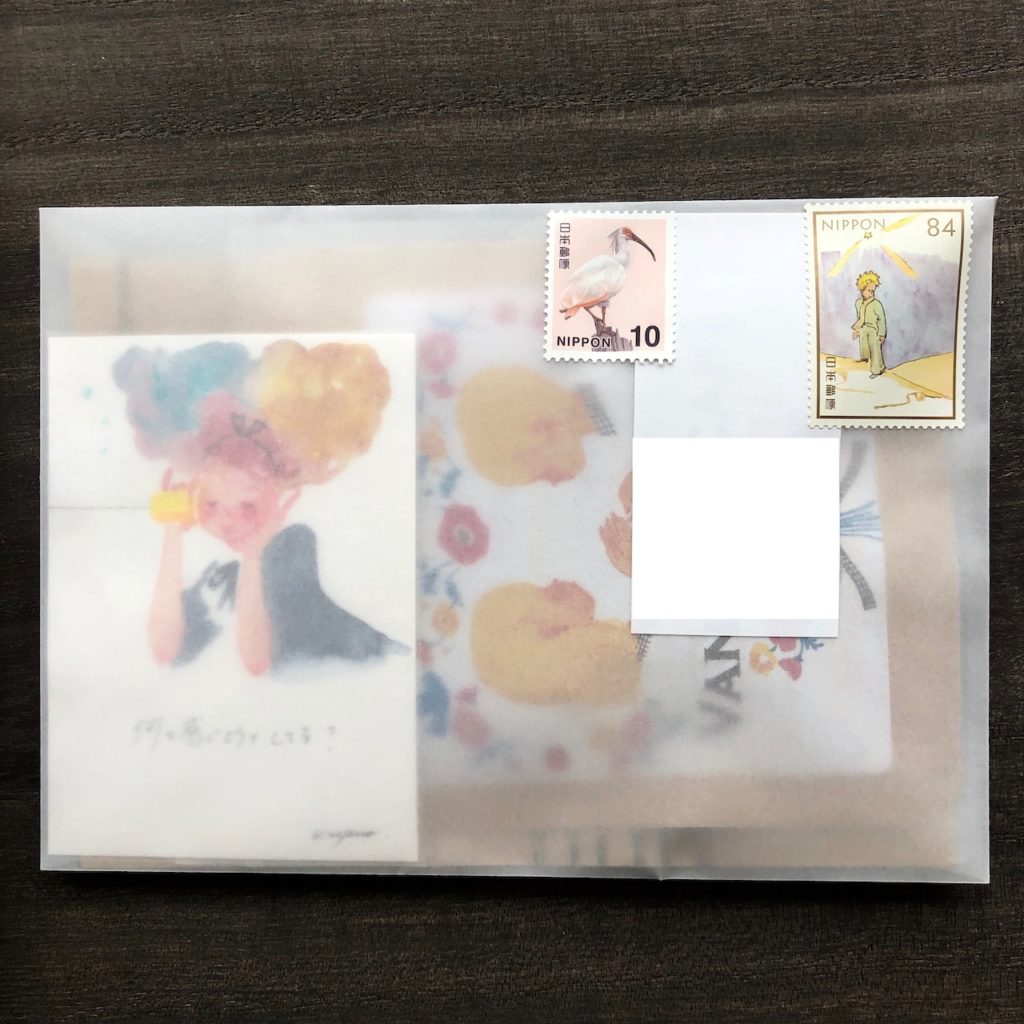 レターセットで使用している半透明のトレーシング封筒でお届け♪