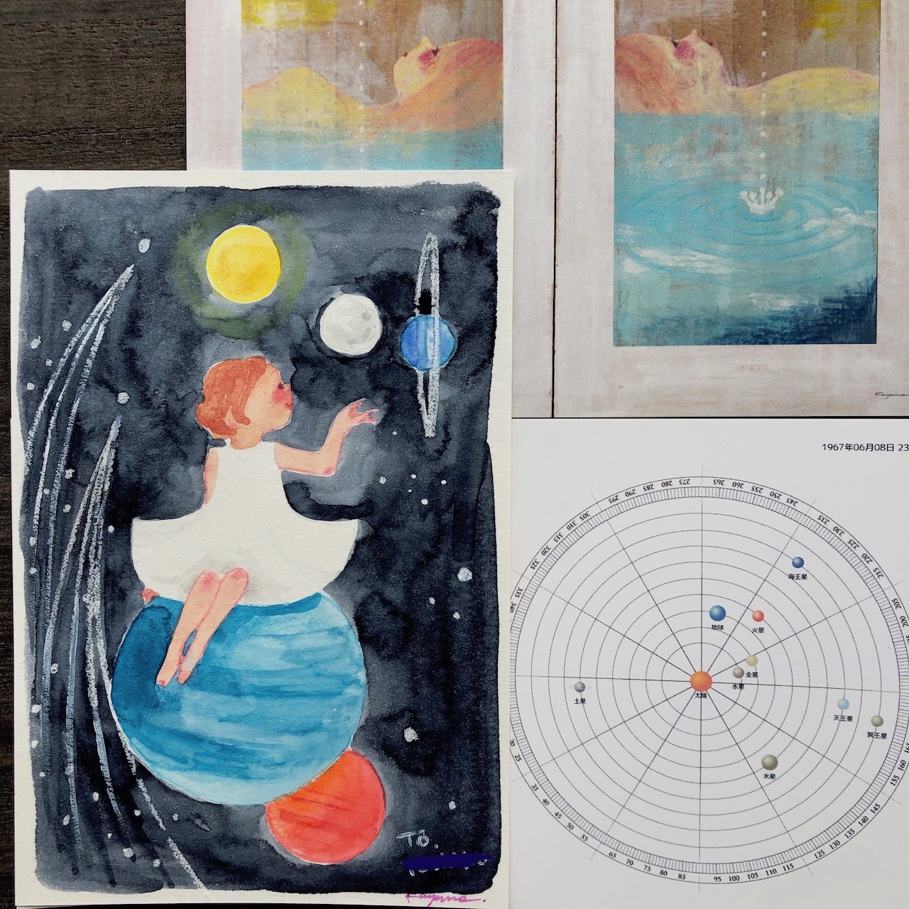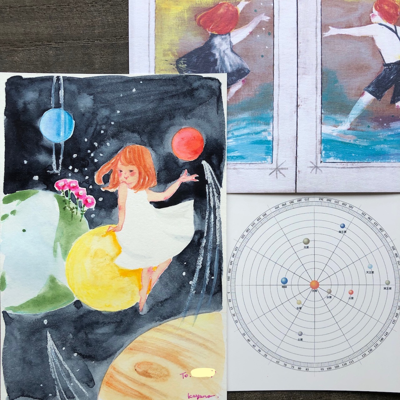 【オンライン60分星読みセッション+額入り原画セット】「星からのヒント・あなただけの惑星の絵も添えて」