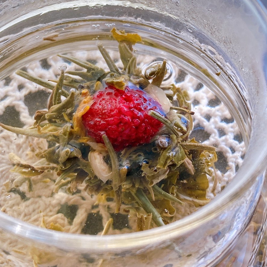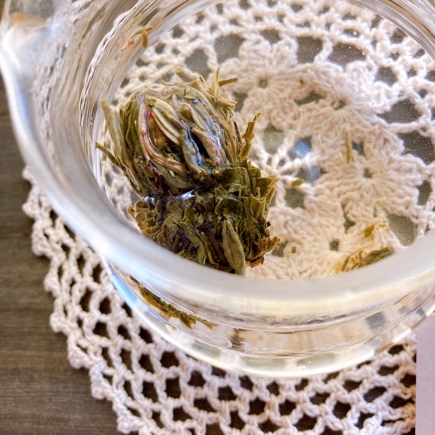 緑の花弁が開くジャスミンティーです♡
