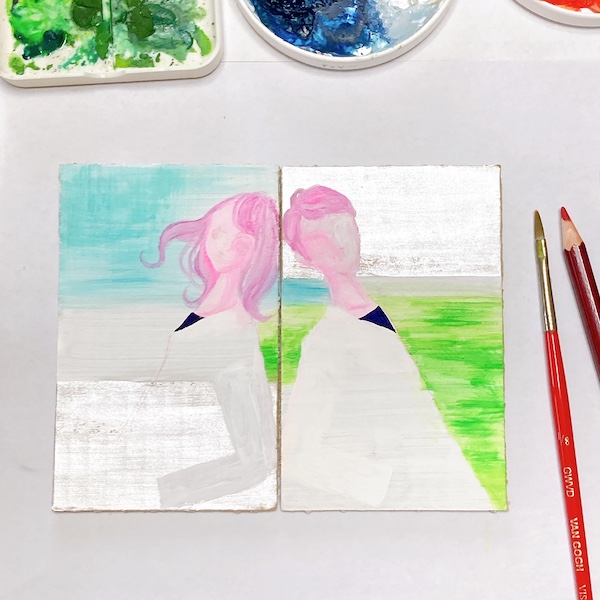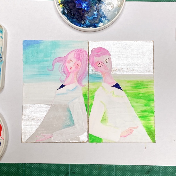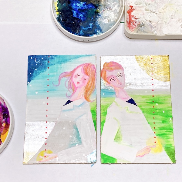セミオーダー絵画「しずくふたつ」原画・サイズ小・カップルへのプレゼントにも