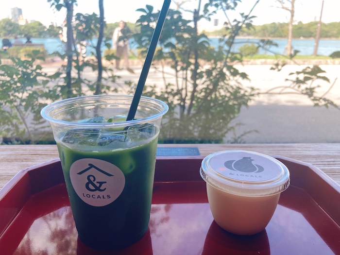 美味しいグリーンティーとプリンを食べながら
