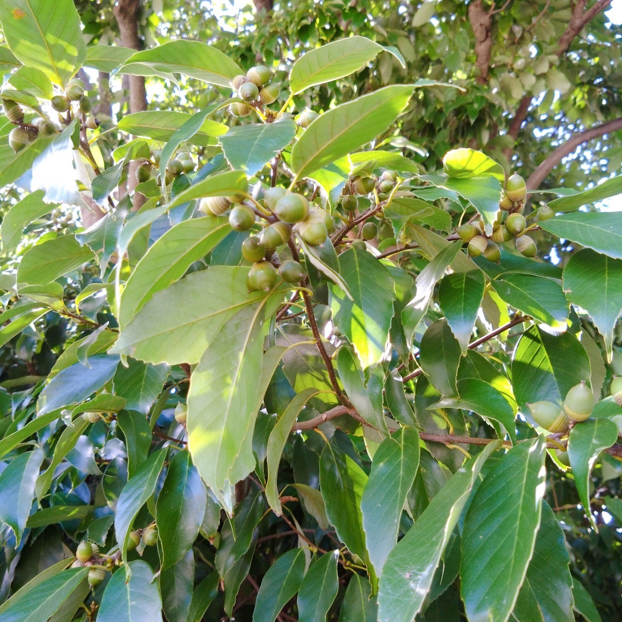 まだ木についている青い実まで。